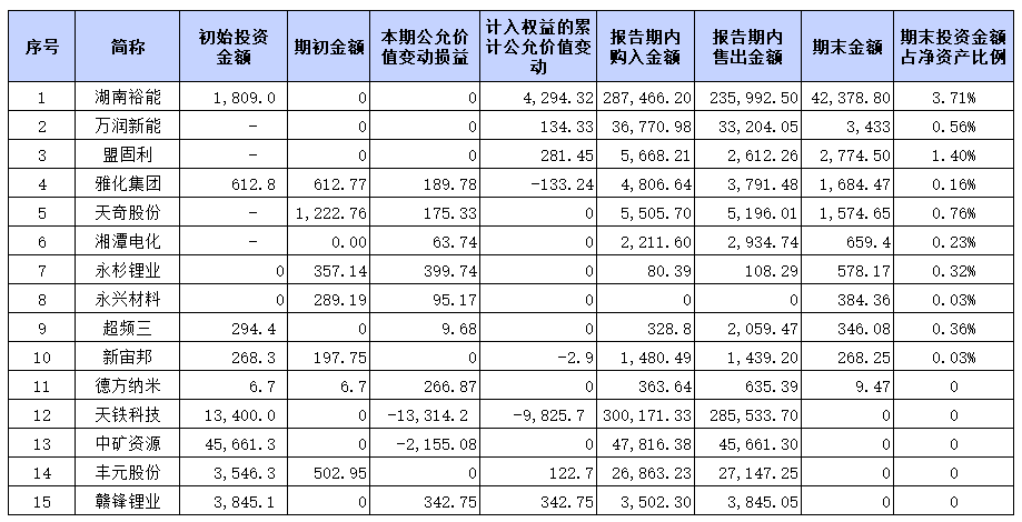 这17家公司中明确列出以套期保值为目的衍生品类型与相应金额变动情况的有湖南裕能、万润新能、盟固利、雅化集团等15家公司,如下表2所示。