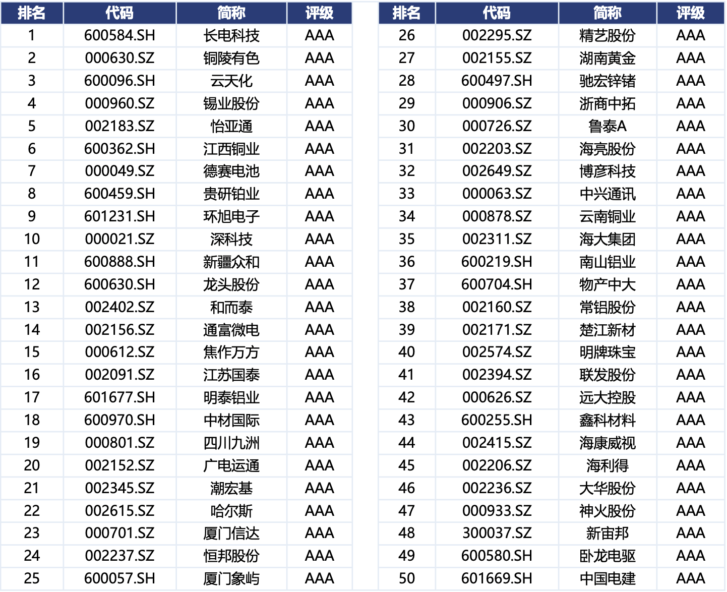 表3: 2022年衍联中国上市公司套保评级排行榜(Top 100)